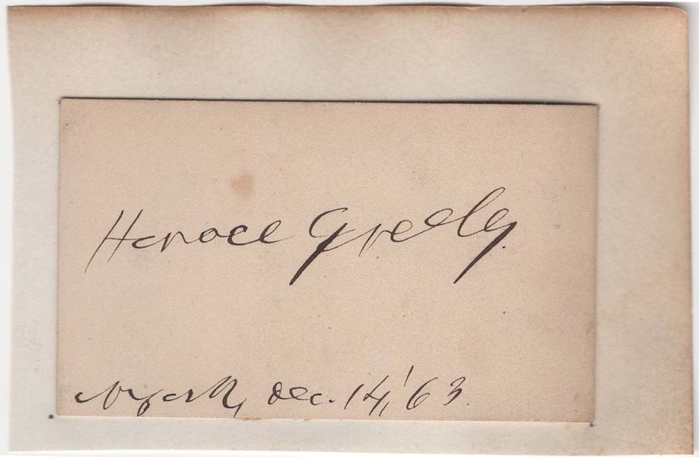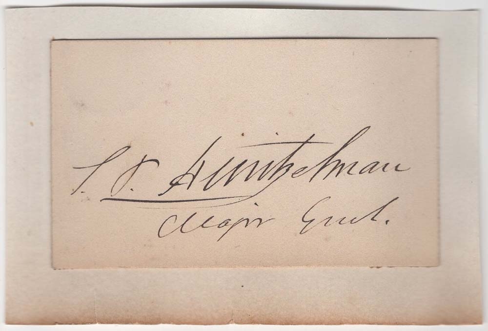 These signatures are from an album compiled by William E. Kettles, who as a young man worked at a telegraph station across from the White House during the Civil War. In 1865 Kettles received the telegraph that Richmond had fallen. It is believed that Kettles likely acquired at least some of the autographs by requesting them from those who came to the telegraph station. Later in life Kettles gifted the album to a friend, and it remained in that family until sold at auction in 2015. [SS]