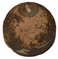 A nice complete cannon ball with good Bormann fuse. From the Texas Civil War Museum collection. [jet] [ph:L]