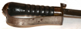 The reverse “P” type iron hilt is tight to the tang. Grips have a ribbed wood handle covered with black leather with an iron ferrule at the guard. Black leather wrap is in very good condition. Guard is cut for wrist knot. Guard and grip are in very good condition.
