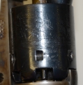 Like new Model 1851 Colt with 100% blue on barrel and six-shot cylinder. Revolver also has strong case colors on loading lever and frame. Square backed triggerguard and grip frame have silver finish. Wood grips are perfect. Action is good. Cylinder scene is crisp and 100%. All stops are present and all nipples are good. Weapon bears serial number 21897 on all parts. Top of barrel crisply stamped “ADDRESS SAML. COLT NEW YORK CITY” and left side of frame is marked “COLT’S PATENT” in two lines.