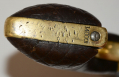 The walnut grips are still rich in color and where “checkered” by hand. The checkering pattern is repeated on both sides with some attention to symmetry. The lower “butt” edges were intentionally rounded-down thus any cartouches were removed. The left grip shows a closed crack running its length.