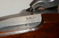 Walnut stock is in excellent condition. The wood clean with sharp lines throughout as well as an even finish. A close look will reveal some minor rub marks or small dings but all in all the stock is near flawless. The side opposite the lock has two of the crispest inspector cartouches this writer has ever seen. Edges of the ramrod channel are free of any chips.