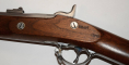 Longarm is a .58 caliber, single-shot muzzleloader with the standard 40” round barrel. The surface of the barrel, like all the metal surfaces on the weapon, is very clean and free of any mottling or pitting. Rear sight is blued and has both flip-up leaves. Breech is crisply stamped on left flat with the letter “P” and “STEEL.” There is also a crisp “VP” with a strong eagle head. Barrel date of “1863” is good with the number “3” being a bit thin. Eagle on bolster is also crisp. Nipple is original and in excellent condition. Bore is spotlessly bright with good rifling.