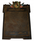 Measuring 13-1/4” by 18-1/2” and weighing 13lbs, this cast iron plaque has a polychrome oval portrait bust of Lincoln at top in a wreath, flanked by US flags. A narrow, raised border frames the… (2022-2328). Learn More »