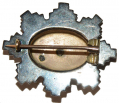 the latter usually designating at least 10 karat quality. The horseshoe and swords motif with the yellow ribbon is a clear allusion to their cavalry service and the number “7” to the regiment. The badge itself alludes to their early war service in the defenses of Washington and in the 22nd Army Corps until joining the Army of the Potomac in June 1863.