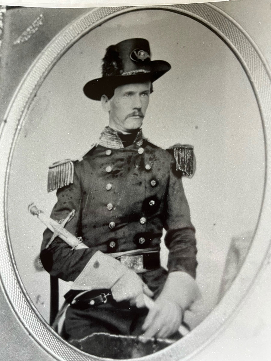 The family connection from Hodges to the Baker family, who owned the artifacts, leads through James G. Hodges’s niece, Susan Green Hodges (1862-1891) daughter of his brother William Henry Harrison Hodges (1824-1880,) since both his sons died without issue. She had married William Tilford Baker (1856-1889,) and the artifacts had passed down to his eldest son, then to his eldest son, and finally to his eldest son, who, along with his daughter, liquidated the estate in the 1990s. A number of Hodges family papers are held by Old Dominion University in Norfolk. At the time of the sale of these artifacts the family retained the letter written by Cook, a wartime CDV of Hodges as Colonel, with his sword and wearing what is certainly this belt plate, and a prewar daguerreotype of him in militia uniform, copies of which were provided by the family and included in the research material.