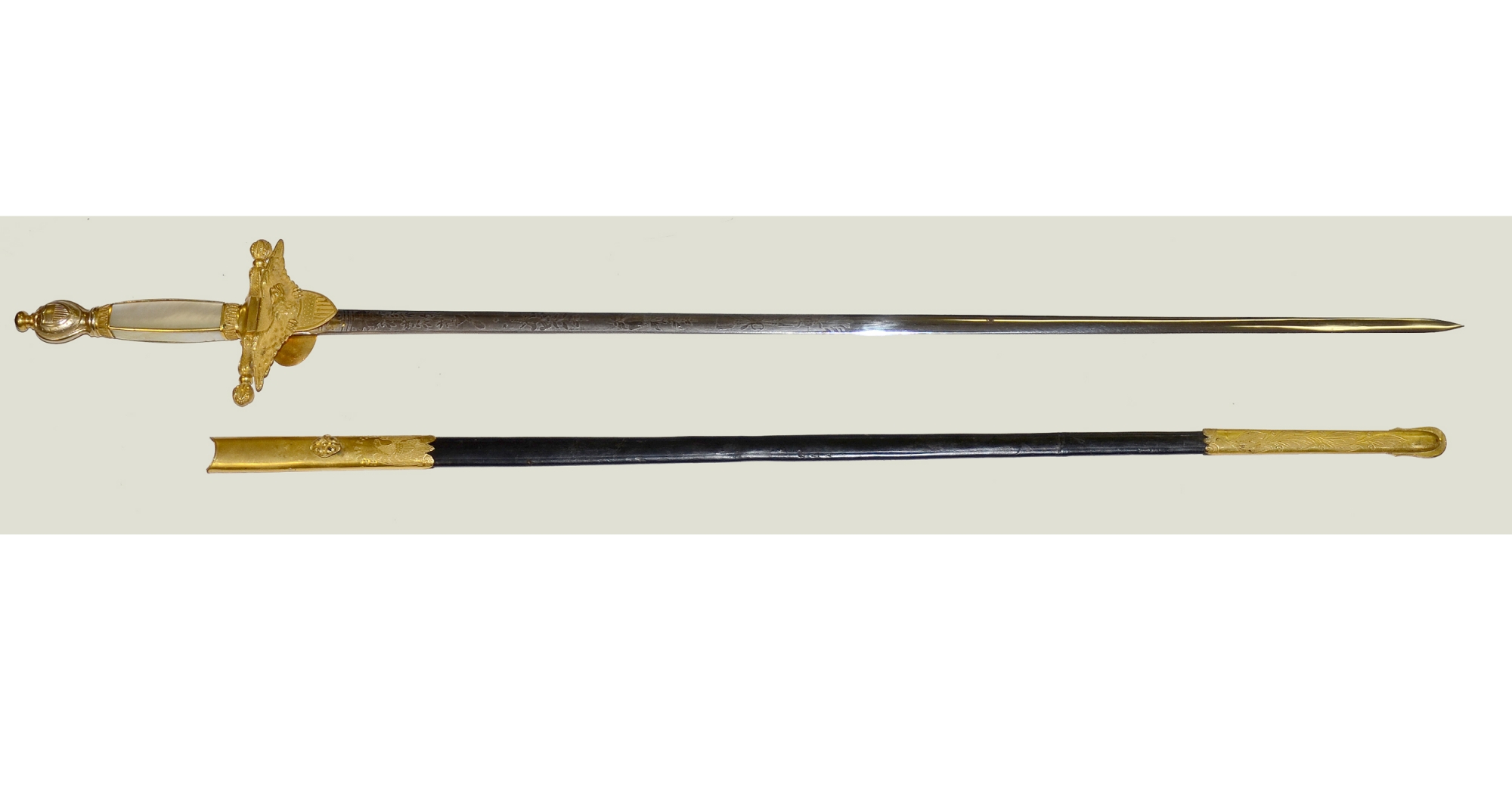 A remarkable sword manufactured by W.H. Horstmann & Co., New York after the Model 1834 US Revenue Cutter/Marine sword. Neatly engraved on the reverse folding guard, “Geo. Wm. Gordon / United States Consul”.