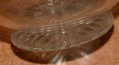 The decanter is 11 1/2" inches tall overall and 5" inches in diameter at widest. The top is maker marked along its lower edge: “From Walton’s Mfg & Lantern Works / N.Y.” We have not been able to date precisely that location of the firm. They appear as Walton’s Newark Lantern Works in New Jersey from about 1866 onward and became well-known as makers of railroad lanterns, may have been the same firm as the Walton Brothers on Warren Street in New York City who seem to have been in the hardware or fancy goods business, advertising ice-skates as early as 1862. In any case a maker of lanterns fits a decanter with metal work and glass. The long neck is pattern glass, and the round base is cut in the form of a star. The globular body is smooth, but etched round with a broad, up and down, zig-zagging ribbon bearing a Greek-key pattern with a flowering vine running in and out of the V-shaped folds of the ribbon.