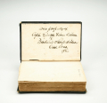 This is a good condition copy of volume 1 of Casey’s Infantry Tactics, officially adopted by the Army in August 1862 and this copy was printed by Van Nostrand that year. Volume 1 encompasses the School of the Soldier and Company, Instructions for Skirmishers and Music- the appropriate volume for the owner, who rose from corporal to 1st lieutenant and was commanding the company when they mustered out in 1864, “their last company commander – and a good one” remarked the regimental historian, and one of just six of the 101 original members of the company still in the ranks at muster out. The flyleaf is inscribed in old brown ink, somewhat blurred, but fully legible, “Was property of Capt. Edwin Alonzo Wilson of Berdan’s Sharpshooters Civil War” signed with a set of initials that appear to be H.E., who might be Hansen Evesmith, whose personal library stamp appears inside the back cover of the book. (His connection with Wilson is unclear, but seems to have been a mining engineer in Minnesota- the stamp also reads “Duluth and Fargo.”) The book is bound in green cloth and in good condition showing some wear, some slight waterstains, etc., but is solid and appears to be complete with its fold-out plates and illustrations. The inscription is in error about Wilson’s rank, though an obituary makes the same mistake. Records we have seen indicates he mustered out as first lieutenant. Perhaps the fact that he was commanding his company when mustered out elevated him in rank in the eyes of his family and friends.