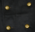 PART 2: THE GREAT COAT. This beautiful overcoat which belonged to Eppa Hunton and came to light with his frock coat is made of the finest black broadcloth. The size is about 38 to 40. Below knee length. It is entirely hand sewn in the most astute hand. Missing only the foul weather cape it is double breasted with a vertical row of six buttons in front. All buttons are extant including those for the cape, none have been resewn. The buttons are eagle "I" buttons. They all have brass backs which are unmarked, but their quality is excellent. The sleeves have a large cuff and are linen lined. The breast and back of the coat is lined with red wool. This overcoat is very similar to the one worn by General Hood (also black and red wool lined) now held by the former Museum of the Confederacy in Richmond. The condition is nearly perfect with a couple of minor tears and stains but has no insect damage. However, the ancient thread in several places has become brittle causing seams to open. These can be easily stabilized if desired.