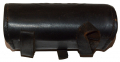 This is a Model-1889 Navy cartridge box for the .38 caliber Colt Model 1889/1895 revolvers. The outer flap is embossed with “USN” in an oval and has a closing tab sewn and riveted to the lower edge. The tab is closed with a brass snap. Tab is complete and unbroken. Two side “ears” remain stitched to the outer flap. A wood block is inside and drilled for two "speed loaders” and six individual cartridges. Two thin belt loops are riveted to the back.