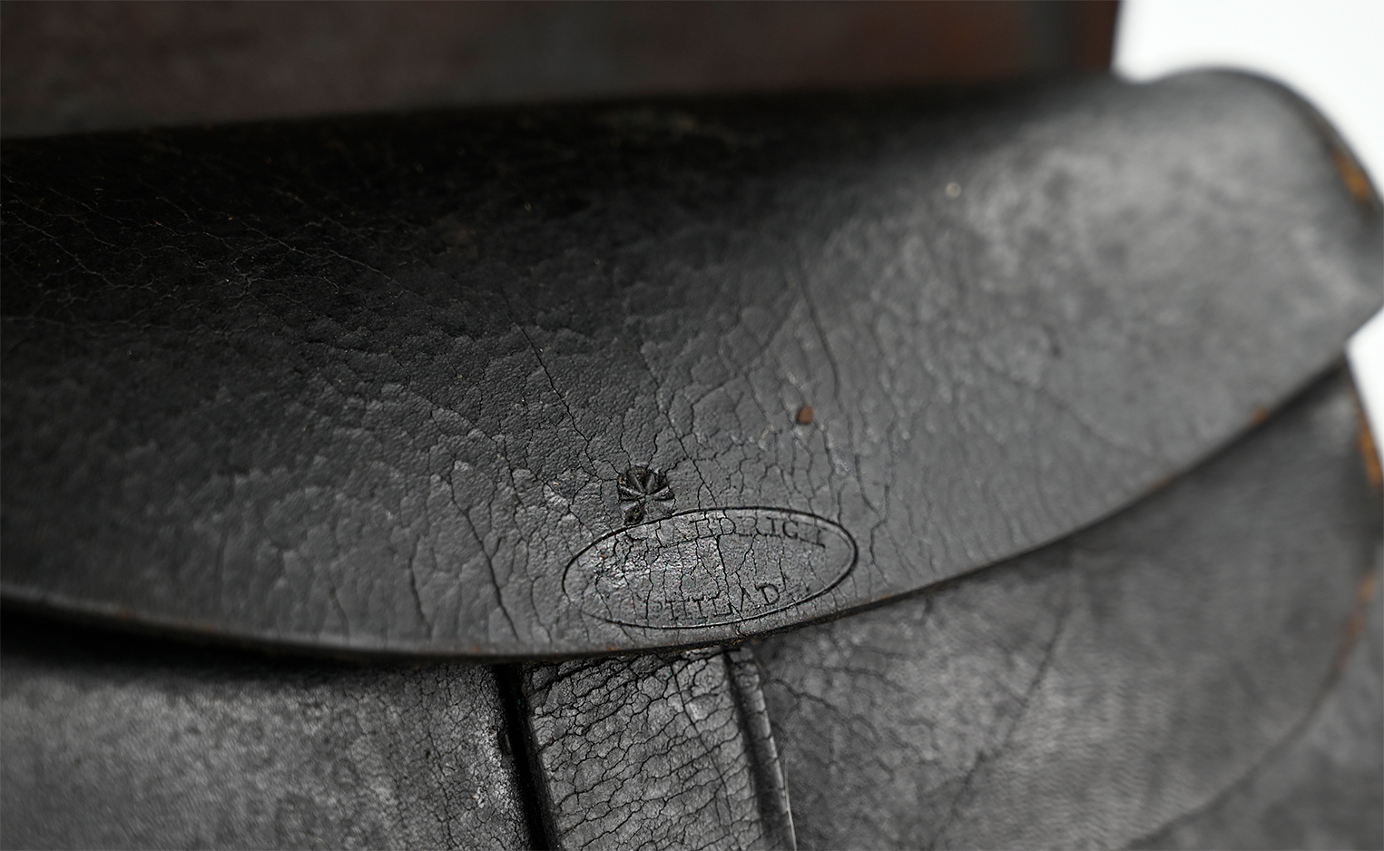 The lower edge of the inner flap is nicely marked “H.G. Haedrich / Philada.” The first two initials are obscured by crackling in the finish, but there is no doubt about it. Haedrich had been a harness maker and saddler in Philadelphia before the war and obtained U.S. government contracts for thousands of accouterments in 1862 and 1863. In 1864 he received a contract for 20,000 sets of infantry accouterments to be delivered to the Frankford Arsenal under a July 4 call for proposals. Although the government was experimenting with a version of the box eliminating the inner flap, Haedrich is known to have supplied this March 1864 pattern.