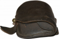 This is a Civil War percussion cap pouch. The leather is clean and the whole piece is in good overall condition. This pattern has the integral closing tab as an extension of the outer flap.