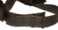 Offered here is a Confederate soldier’s accoutrement set consisting of a leather cap pouch, a cartridge box on a rarely offered "gunner’s" style waist belt that has been together for decades. The leather waist belt is a rare Confederate made example. This “gunner’s belt” is a simple belt with a roller buckle sewn in place over a leather tab. There are tooled lines along the edges of the belt. The leather is pliable with no breaks. The belt is 39 inches in length and is 2 inches wide. Although well-made it is not quite as well done as the Union equivalent. There are dozens of photographs of Confederate soldiers wearing this exact style belt.