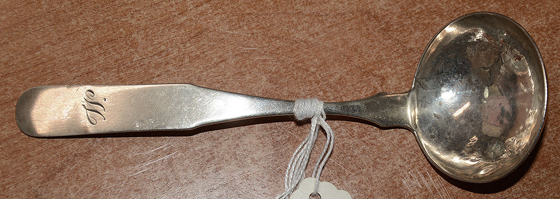 This American solid coin silver ladle measuring 6 ¾” in length was made by John Erwin of Baltimore, MD. The only time and place in the U.S. where hallmarks were required on silver was in Baltimore during the years of 1814 to 1830; those present on the reverse of the handle indicate a date of 1817.