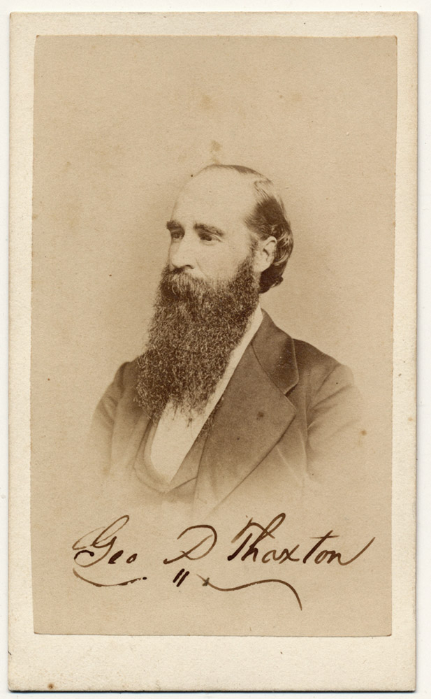 Contrast and clarity are excellent. Paper and mount are very good. Bottom of image is signed in period ink “GEO. D. THAXTON.”