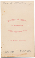 Reverse has a photographer’s imprint for MINNIS’ GALLERY… PETERSBURG, VA. Top of reverse has a modern pencil ID which is confirmed by an almost identical image of McEnery in Confederate uniform found on his findagrave.com entry.
