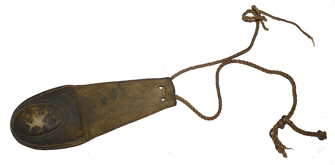 This is a Civil War-era percussion cap pouch. This pattern has the closing tab as a continuation of the outer flap. This latch tab is unbroken. Oval sub-inspector’s stamp lightly visible on front.… (490-7636) SOLD. Learn More »