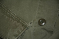 Coat is made of a green “rip-stop” material with slanted breast pockets and flaps that button down. The flap buttons are not exposed but are covered. There are five green buttons down the front. When closed these buttons are also not exposed. The lower portion of the coat also has two pockets like those on the breast but without being slanted. Shirt is short sleeved and in good overall condition. The size label in the neck is gone but the nomenclature label attached to the lower pocket reads “COAT, MAN’S, COTTON W/R RIP-STOP POPLIN… DSA 100-68-C-2418 ALLEN OVERALL CO. INC.”